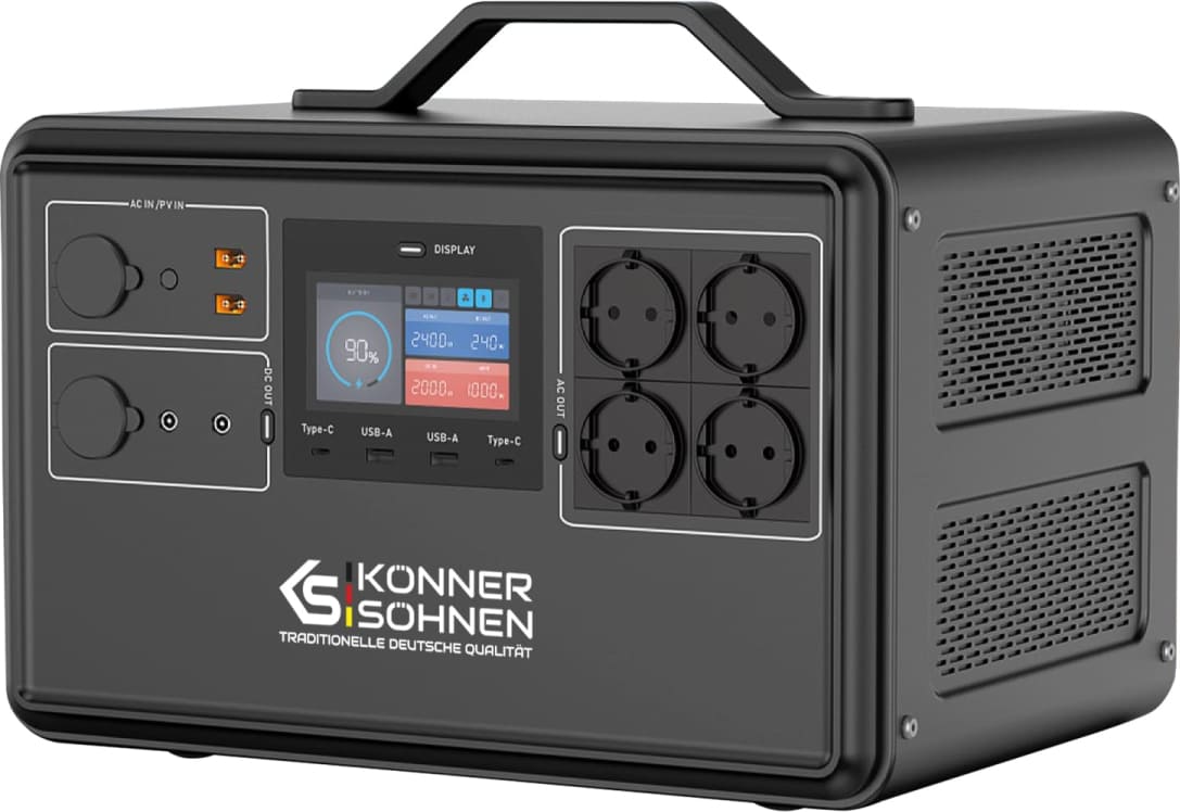 Könner & Söhnen KS 2400PS on usaldusväärne ja võimas kaasaskantav jõujaam, mis tagab stabiilse elektrivarustuse nii siseruumides kui ka välitingimustes. Vastupidava LifePO₄ akuga, mis talub kuni 4000 laadimistsüklit, on see ideaalne lahendus koduseks varutoiteks, matkamiseks, väliüritusteks, tööriistade toiteks või olukordadesse, kus elektrit pole käepärast.