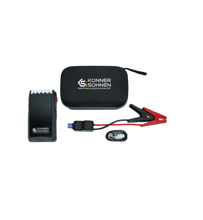 Käivitusabi 1400A, 18Ah, KS JS-1400, Könner & Söhnen sisseehitatud LED-taskulamp mitme režiimiga (sh SOS-signaal) on kasulik hädaolukordades ja pimedatel teedel.