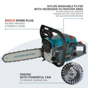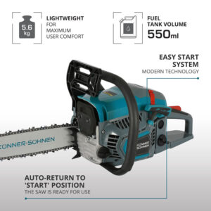 Könner & Söhnen® bensiinimootoriga kettsaag KS CS21G-13 on kompaktne ja töökindel tööriist, mis sobib suurepäraselt koduseks puude lõikamiseks, okste eemaldamiseks, aedade rajamiseks ja üldiseks haljastustööks.