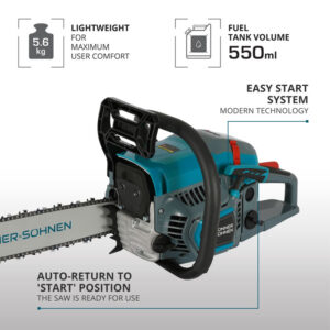 Kerge käivitus (easy-start süsteem), külgkinnitusel kettipingutus, automaatne ketiõlitussüsteem ja ökonoomne mootor muudavad kasutamise sujuvaks ja mugavaks. Kettsaag ei sõltu elektrivõrgust ja võimaldab töötada ka metsas või suvekodus.