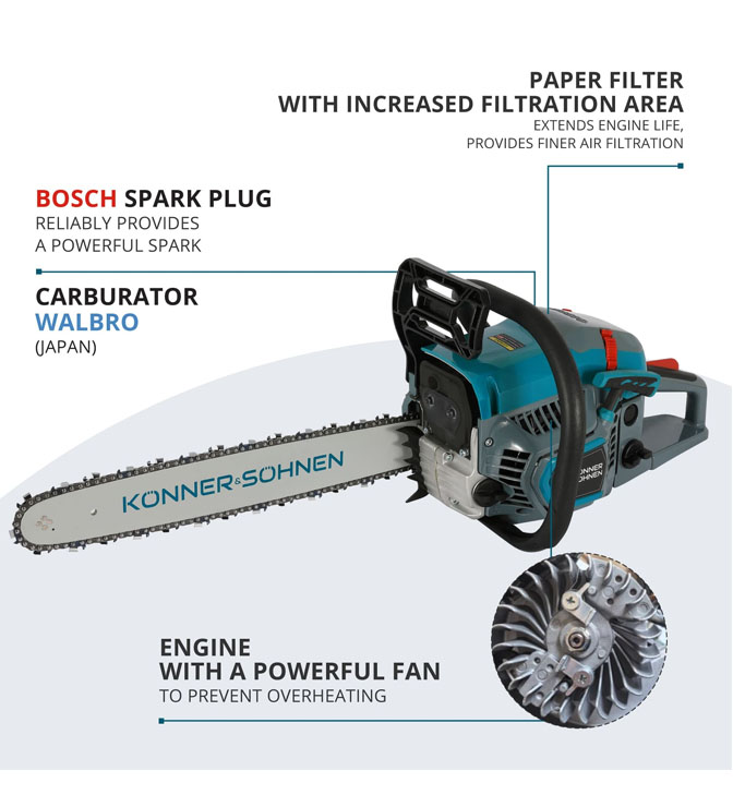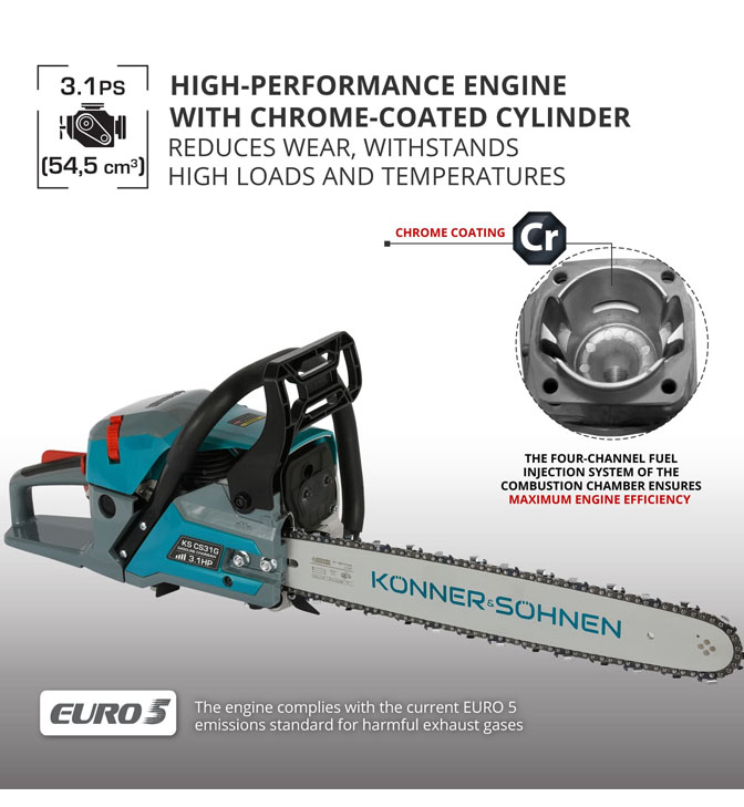Bensiinimootoriga kettsaag KS CS31G-18, Könner & Söhnen – 54,5 cc, 45 cm / 18” juhtplaat