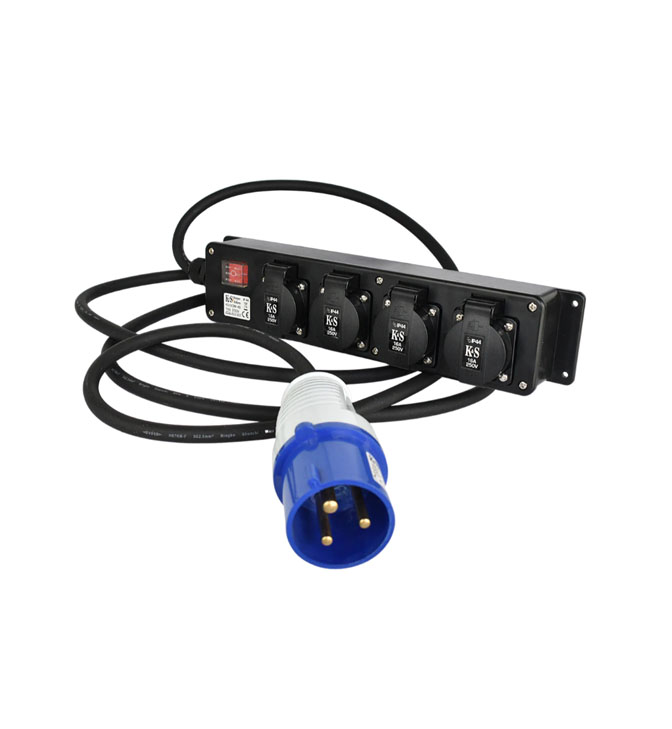 - Muudab 32A pistiku 4 × 16A pistikupesaks