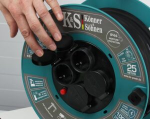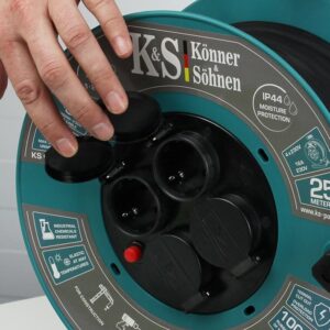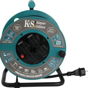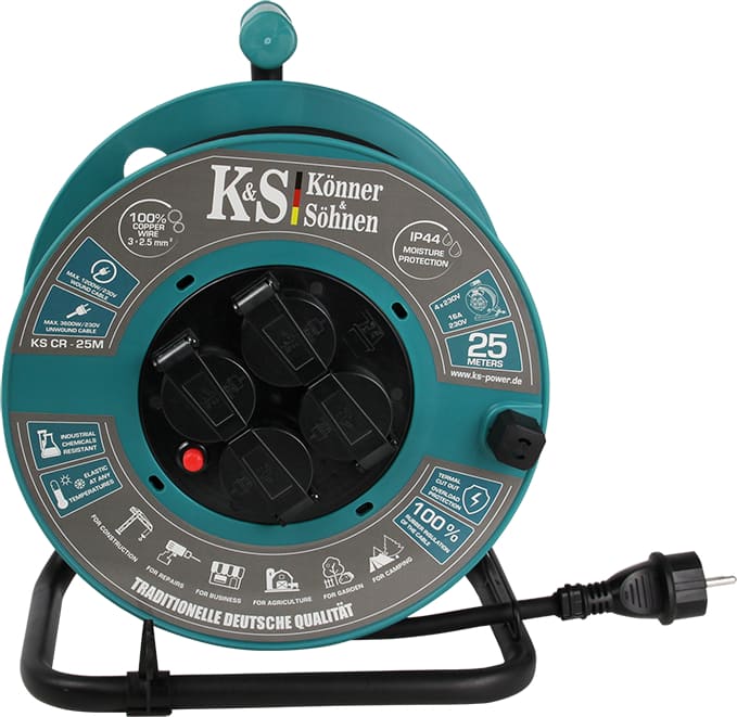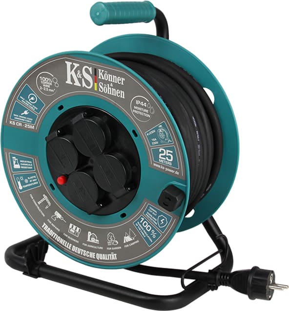 Könner & Söhnen® KS-CR-25M on vastupidav 25-meetrine pikendusjuhe poolil, mis sobib kasutamiseks nii sise- kui välitingimustes, sealhulgas niisketes ja nõudlikes tööoludes. IP44 kaitseklass tagab kaitse pritsiva vee ja tahkete osakeste eest, mistõttu on see ideaalne ehitusplatsile, aeda, garaaži või töökoja jaoks.