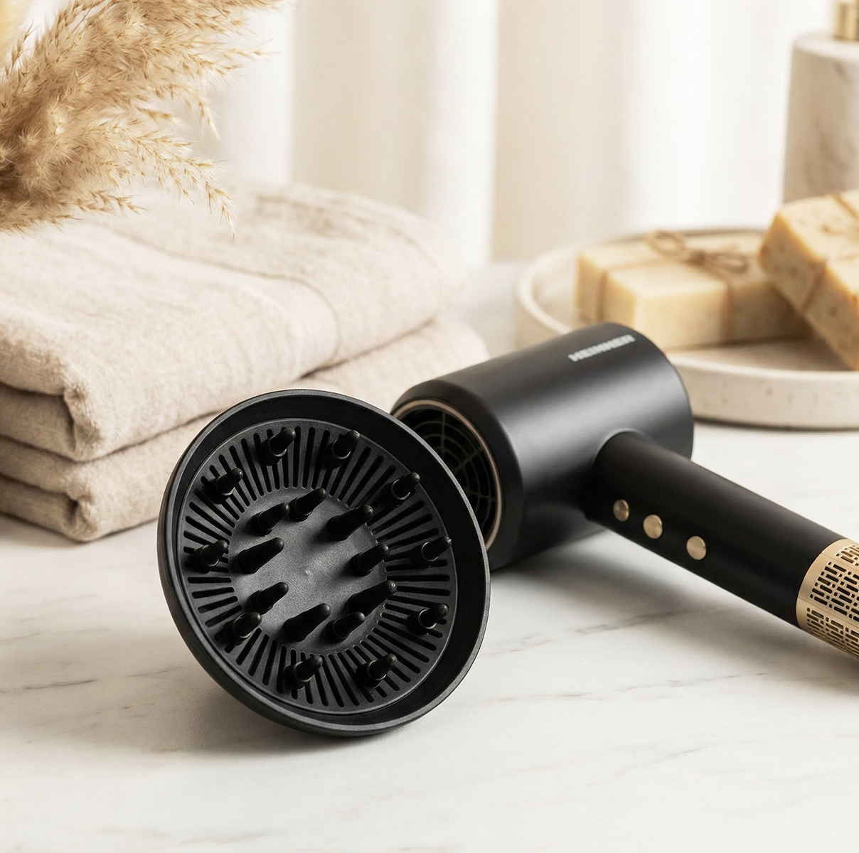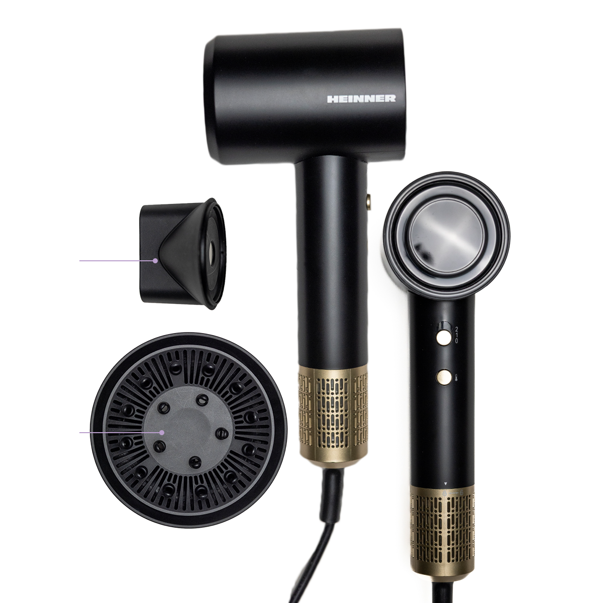 Komplekti kuuluvad magnetiline kontsentraator ja magnetiline difuuser, mis võimaldavad õhuvoolu täpselt suunata ja luua erinevaid soenguid. Eemaldatav filter muudab seadme hooldamise lihtsaks.