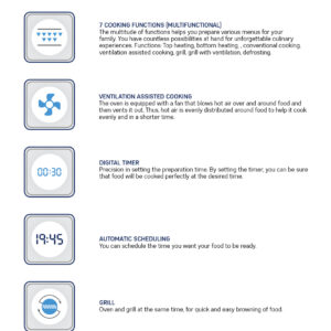 • Küpsetusfunktsioonid: 7 (sh grill, pöördõhk, valgustus)