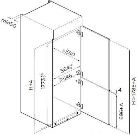 - Tüüp: integreeritav külmutuskapp Combi