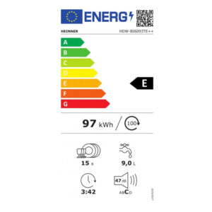 Heinner HDW-BI6093TE++ on kompaktne ja nutikalt üles ehitatud integreeritav nõudepesumasin, mis mahutab kuni 15 nõudekomplekti. Tänu 3-korvilisele süsteemile, sh ülemisele söögiriistakorvile, pakub see rohkem paigutusruumi kui tavapärased väiksemõõdulised masinad.