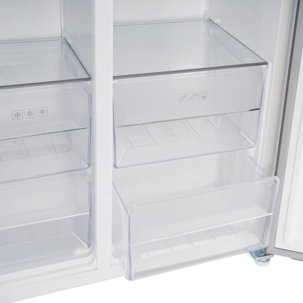 Külmik Heinner HSBS-H442NFGWHE++ on mahukas ja kaasaegne side-by-side külmik, mis sobib suurepäraselt suuremale perele või avatud köögiga koduomanikele. 442-liitrine kogumaht pakub piisavalt ruumi kõigele, alates igapäevasest toidust kuni külmutatud toiduvarudeni.