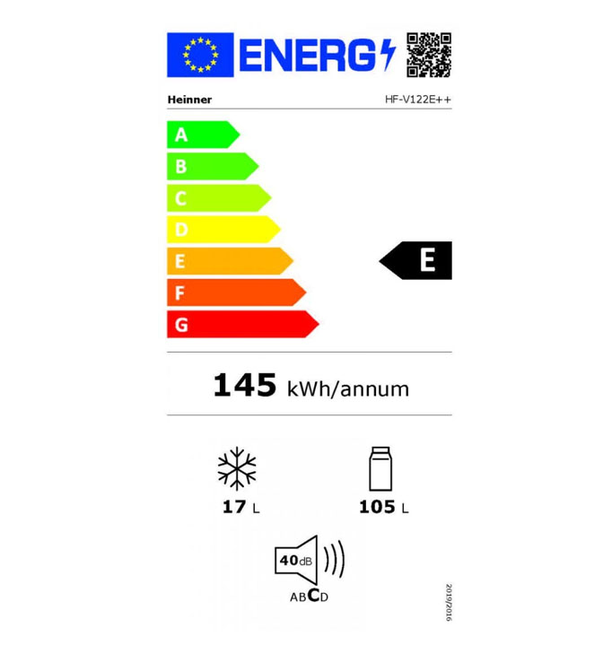 Külmik Heinner HF-V122E++ mahutab 122 liitrit ja sügavkülmikuosa 17 L, sobib ideaalselt väiksemasse kööki, stuudiokorterisse või lisa külmutuskapiks.