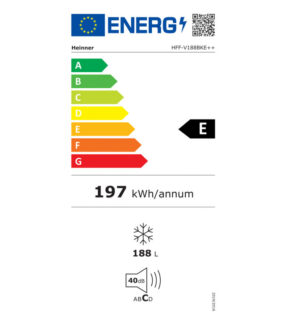 Sügavkülmik Heinner HFF-V188BKE++ ühendab elegantse musta disaini ja praktilise funktsionaalsuse.