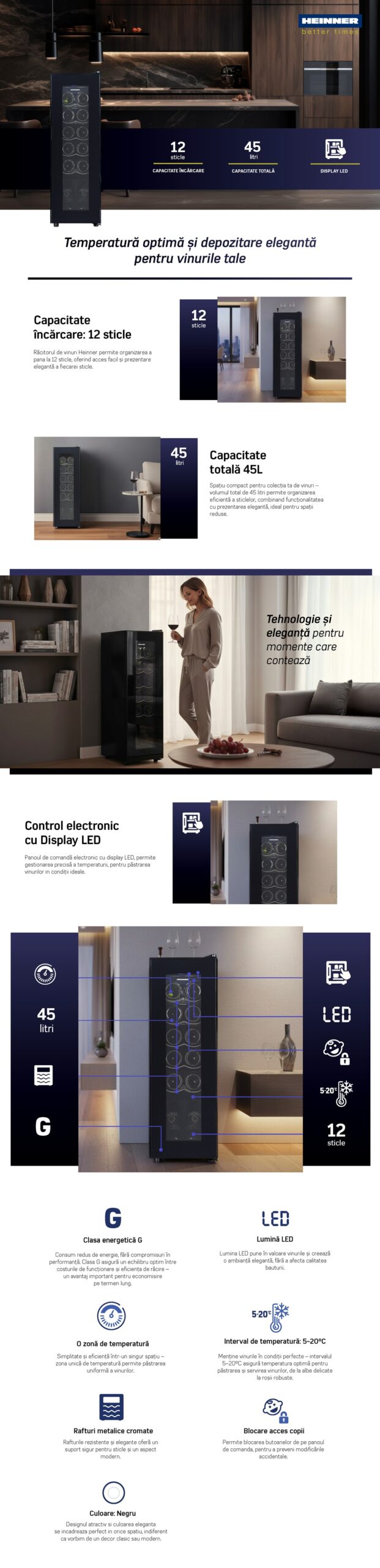 Veinikülmik Heinner HRV-A45DRM12 – 12 pudelit, 45 l, must