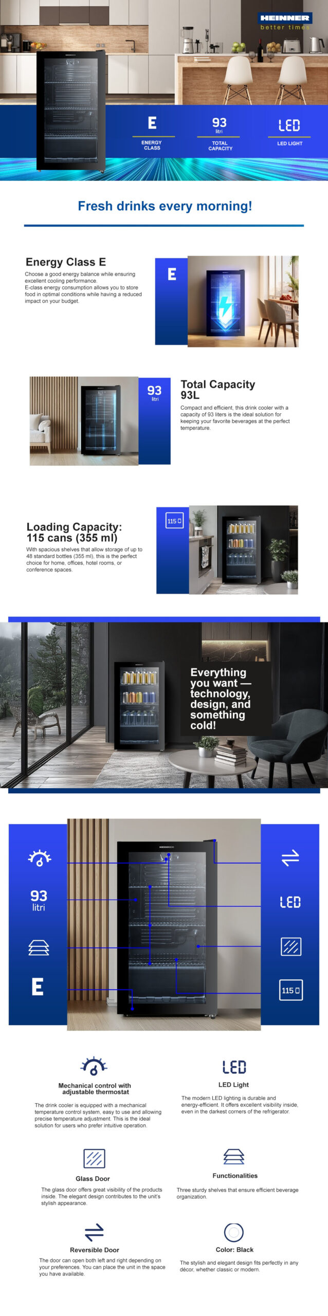 Külmik jookidele Heinner HBC-M93BKE – 93 L, must