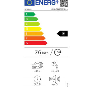 Nõudepesumasin HEINNER HDW-FS4506DSE++ on kompaktne ja funktsionaalne seade, mis mahutab kuni 10 nõudekomplekti — ideaalne väiksesse kööki või väikemale perele. Energiaklass E ja väiksem läbimõõt (~45 cm) võimaldavad seadme paigaldamist ka kitsamasse kapiruumi.