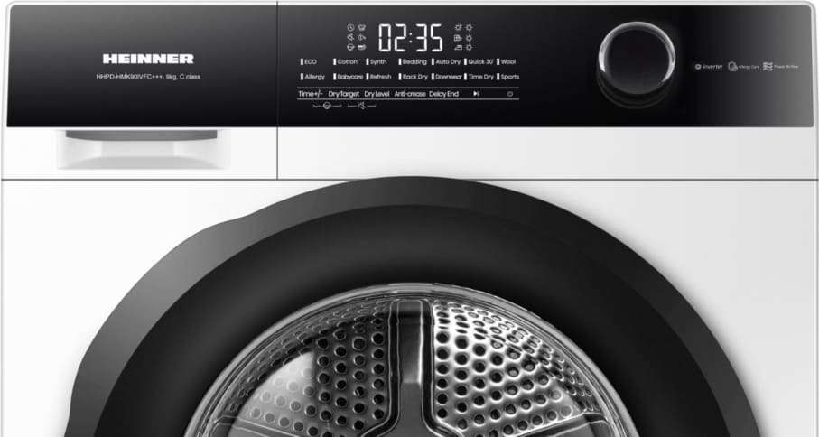 Heinner HHPD-HMK90IVFC+++ on energiasäästlik soojustuspumba tehnoloogiaga kuivati, mis tagab õrna, tõhusa ja madalama temperatuuriga kuivatamise — suurepärane valik nii igapäevaseks pesuhoolduseks kui ka delikaatsemate riiete jaoks.