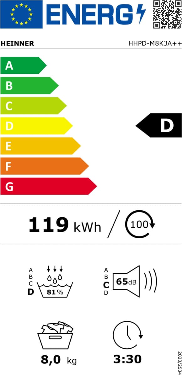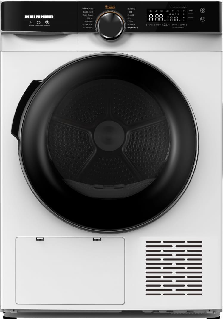 Kuivati (soojuspump) Heinner HHPD-M8K3A++ on tõhus ja energiasäästlik kuivatusseade, mis sobib hästi keskmisele perele. 8 kg kuivatusmaht katab mugavalt ühe pesukorra ning energiamärgise A++ juures töötab seade ökonoomselt ja kangasõbralikult.