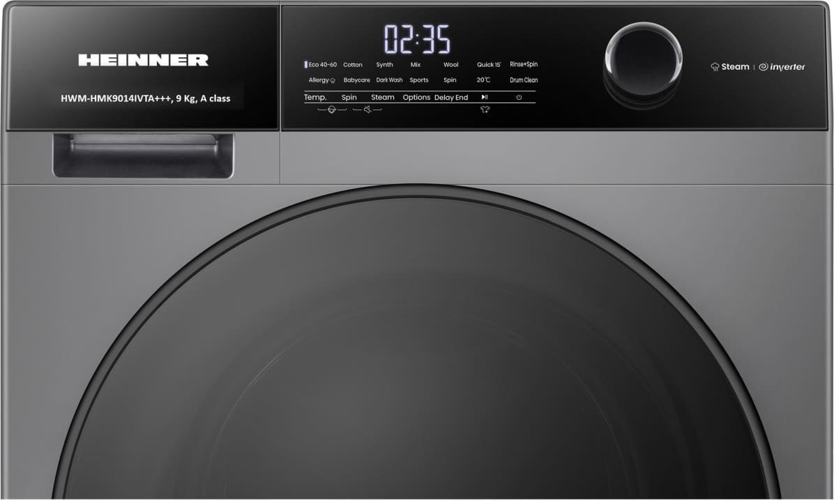 Pesumasin Heinner HWM-HMK9014IVTA+++ – 9 kg, 1400 p/min, inverter, auruprogrammid, hall