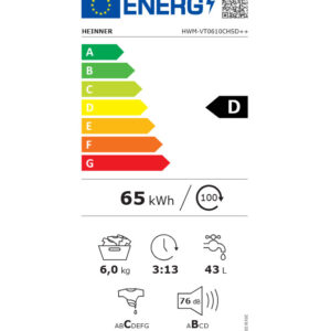 Pesumasin Heinner HWM-VT0610CHSD++ on eestlaetav mudel, mille pesukogus on 6 kg ning mis sobib hästi väiksemale perele või kodu pesuruumi, kus ruumi on vähem. Energiaklass D tagab mõistliku elektritarbimise ning tsentrifuugi maksimumkiirus 1000 p/min.
