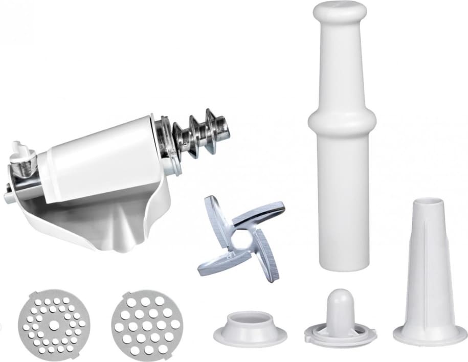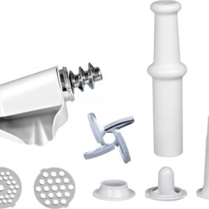 Komplektis olevad tarvikud – tomatitarvik ja vorstitarvik – muudavad seadme veelgi mitmekülgsemaks. Kaasas on ka kaks roostevabast terasest lõikeketast, mis sobivad erineva jämedusega hakkimiseks. Vastupidav valualumiiniumist roostevaba lõiketerä tagab puhta ja kiire lõike.