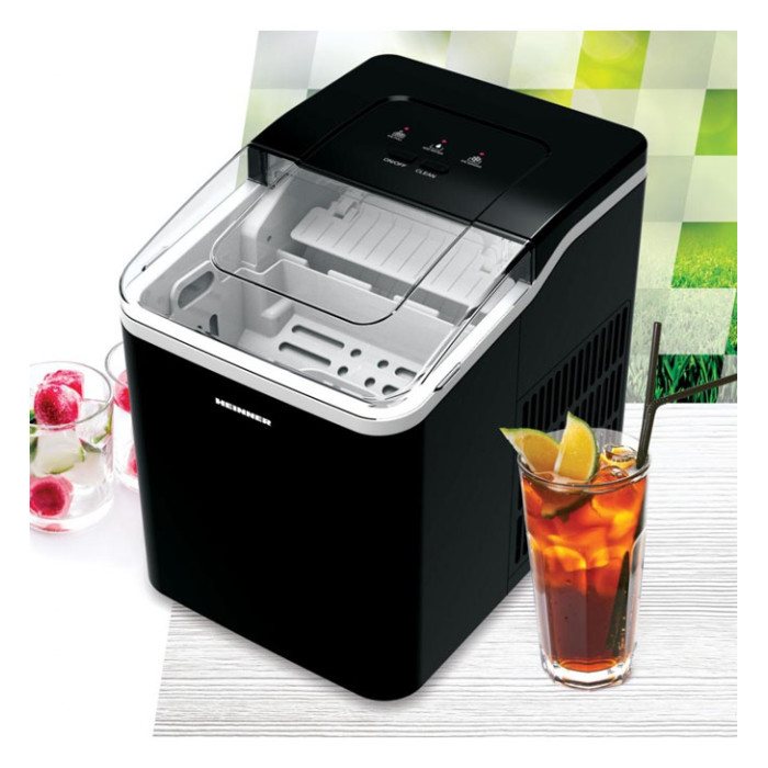 Jäämasin Heinner HIM-120BK võimaldab valmistada kuni 12 kg jääkuubikuid ööpäevas, mis muudab selle ideaalseks valikuks koduseks kasutamiseks suveperioodil või väiksemale koosviibimisele. Seade töötab 120 W võimsusel ning esimeste jääkuubikute saamiseks kulub vaid umbes 7–11 minutit ühe tsükli kohta. Veepaagi maht on 1,5 l ning kaasas on eemaldatav jääkorv, suur läbipaistev kaanega vaade ning näidikud täis jääkorvi ja vähese vee korral. Must viimistlus annab seadmele elegantse välimuse.