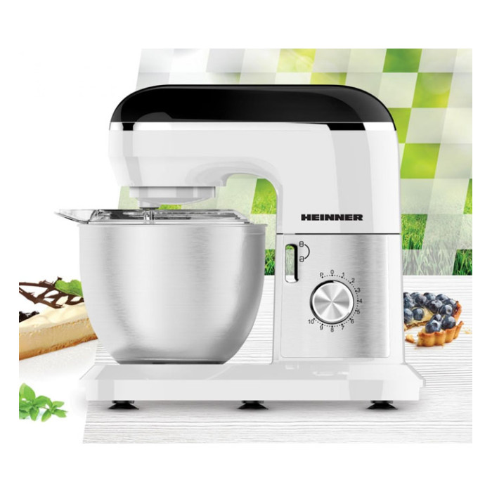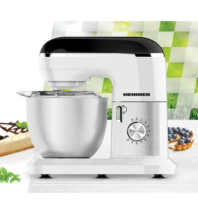 Lauamikser Heinner HPM-1300WHBK on võimas ja kvaliteetne köögiseade, mis sobib hästi intensiivseks koduseks kasutamiseks või väiksemale ettevõttele. 1300 W mootor võimaldab tõhusalt segada ja sõtkuda taignaid, vahustada koort ning valmistada suuremaid koguseid lihtsasti. 6-liitrine roostevabast terasest kauss annab piisava mahutavuse ning planetaarne segamissüsteem tagab ühtlase tulemuse iga kord – vispel liigub nii ümber oma telje kui ka kausi serva mööda.