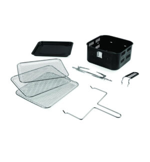 • Tarvikud: eemaldatav mittenakkuva kattega korv, küpsetusrest ja pann