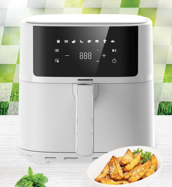Heinner HAF-B6WH17SQ on elegantne valget värvi kuumaõhufritüür, mis ühendab funktsionaalsuse ja stiili. Tänu 1700 W võimsusele ja kiirele kuumaõhuringluse tehnoloogiale valmistab see krõbeda ja mahlase toidu ilma õlita – tervislikum ja puhtam viis toiduvalmistamiseks. Digitaalne ekraan ja puutetundlik juhtimine muudavad kasutamise mugavaks, samas kui mittenakkuv korv teeb puhastamise lihtsaks. Ideaalne valik väiksemale perele või igapäevaseks kasutamiseks.