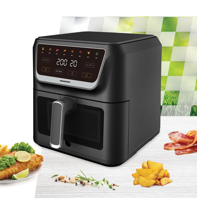 Heinner HAF-H8BK1700 on võimas ja suure mahutavusega kuumaõhufritüür, mis võimaldab valmistada krõbedaid ja maitsvaid toite märkimisväärselt vähema õliga. Seadme 1700 W võimsus ja ühtlane kuumaõhu ringlemine tagavad kiire küpsetamise, ühtlased tulemused ja kuldpruuni tekstuuri ilma liigse rasvata.