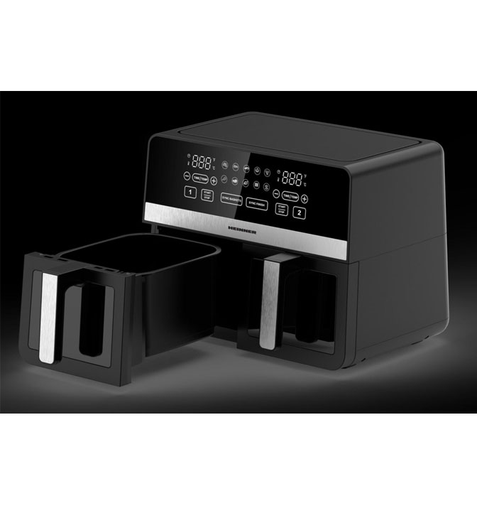 Heinner HAF-K10DB24BK on võimas ja mahukas kuumaõhufritüür. Selle 9,5-liitrine kogumaht võimaldab valmistada korraga suures koguses toitu.