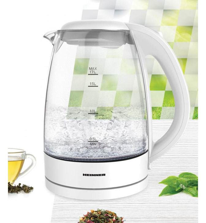 Veekeetja HEINNER HEK-2200GWH – 2200W, 1.7L, klaasist korpus