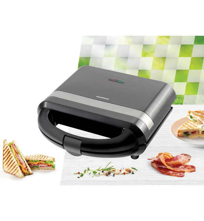 HEINNER SM-H700BK võileivagrill on lihtne ja usaldusväärne abivahend kiirete kuumade võileibade valmistamiseks. Võileivagrilli 700 W võimsus tagab ühtlase kuumutuse, mittenakkuvad grillplaadid hoiavad toidu kauni ja puhta ning jahedaks jääv käepide muudab kasutamise turvaliseks.