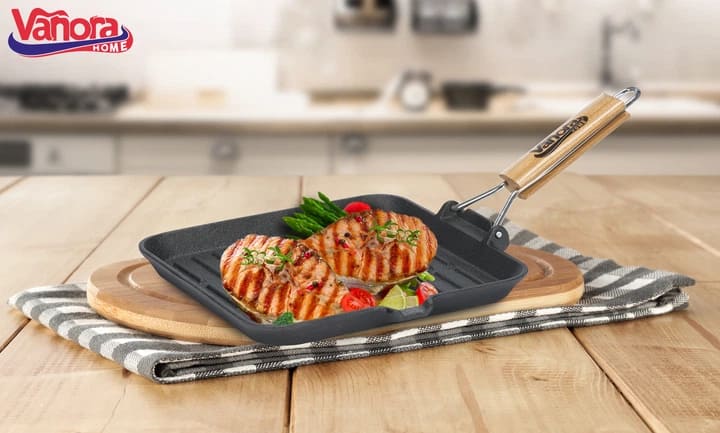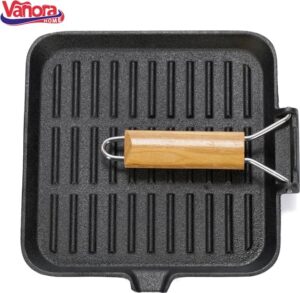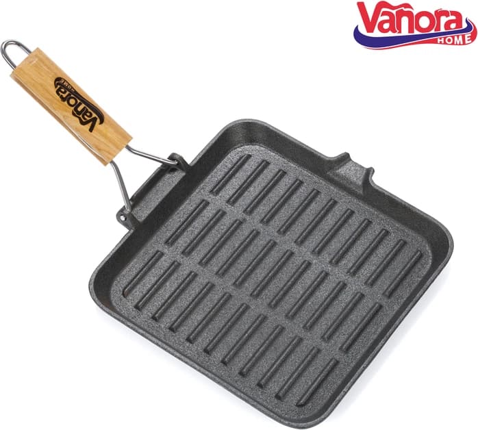 Vanora malmist grillpann on kompaktne ja vastupidav valik igapäevaseks grillimiseks. 23 × 23 cm suurus sobib ideaalselt liha, köögiviljade, kala ja muude roogade valmistamiseks, andes toidule iseloomulikud grilltriibud ja rikkaliku maitse.
