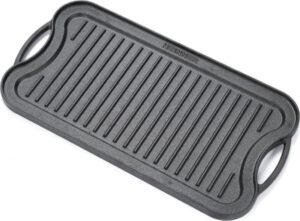 Pann on pööratav, mis tähendab, et seda saab kasutada mõlemalt poolt – sile pind sobib praadimiseks ja teine pool grillimiseks. See teeb panni mitmekülgseks kasutamiseks nii pliidil kui ka ahjus.
