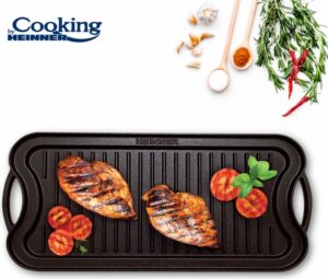 Heinner malmist grillpann on vastupidav ja praktiline valik liha, köögiviljade ja muude toitude grillimiseks. Malmmaterjal tagab suurepärase soojuse salvestamise ja ühtlase jaotuse, võimaldades saavutada mahlase ja ühtlaselt küpsenud tulemuse.