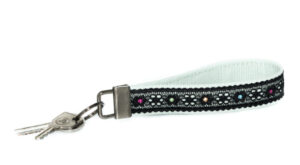 Võtmehoidja „Mündiroheline“ ühendab pehme pastelse tooni, elegantse pitsi ja Swarovski kristallide sära. Seda saab mugavalt kanda ümber käe, hoides võtmed alati käepärast.