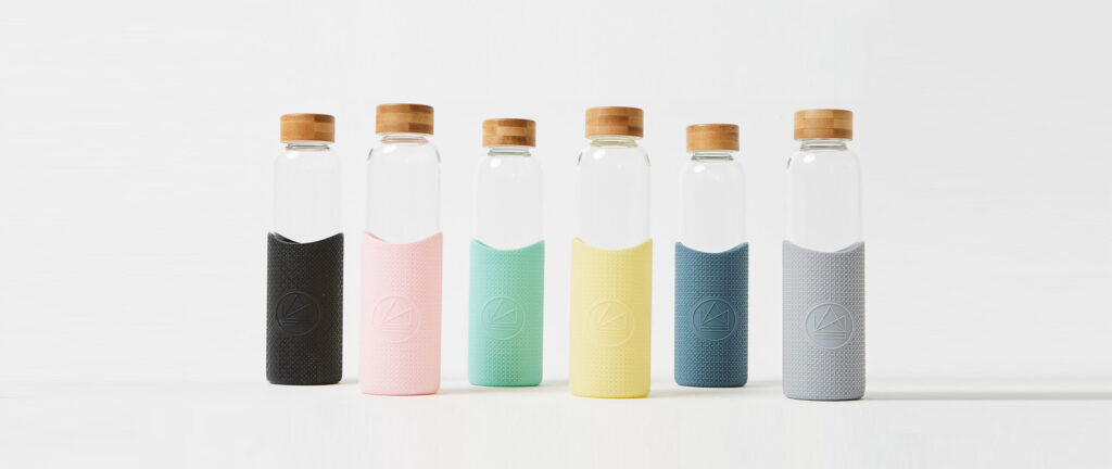 Joogipudelil on libisemisvastane silikoonümbris, mis muudab selle kindlaks ja mugavaks käes hoida.
