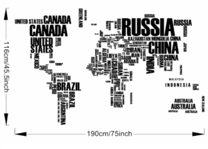 Maailmakaart riikide nimedest – kleebitav vinüülist seinakaunistus